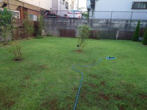 相変わらず猛暑日が続いて、ラビットラン出来ませんが芝生は成長が加速してます。昨年は水遣りが少し足りなかった反省踏まえ今年は芝生状態見ながらスプリンクラーも使いつつ頻度をあげて実施中。写真下は昨年今頃のもので芝刈りが甘い(芝生長過ぎ)、写真上は昨日の状態で丁寧にバリカン使って芝刈りと雑草取り。芝生そっくりな雑草もあり中々手強いです。後は冬のボーナス次第ですが、バーゴラ、トンネル、植樹など改良どこまで出来るか。デザインセンスが無いのでガーデンプランナーの方に設計相談しようとしあん